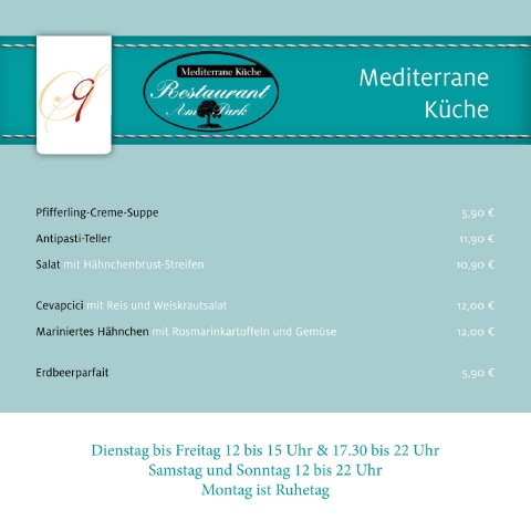 Dienstag bis Freitag 12 bis 15 Uhr & 17.30 bis 22 Uhr