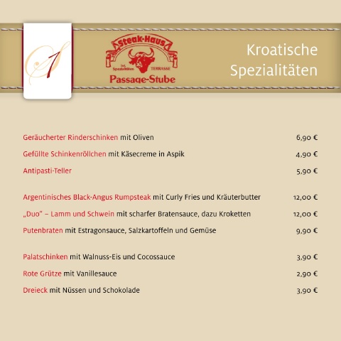 Geräucherter Rinderschinken mit Oliven 6,90 € 17:00 – 22:00 Hauptstraße 116