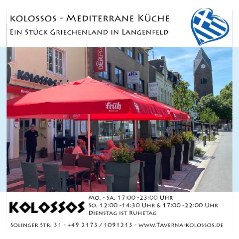sonntag 12 bis 14.30 uhr & 17 bis 22 uhr | Dienstag ruhetag Solinger Str. 31 - +49 2173 / 1091213 - www.Taverna-kolossos.de