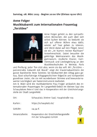 ternationalen Frauentages ihr Langenfeld-Debüt im kleinen Saal des